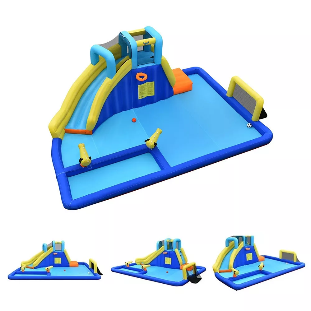 A felfújható vízi játszóház ideális választás a meleg nyári napokra, ha aktív és izgalmas szabadtéri játékot keresel gyerekeknek. A vízi csúszda, mászófal, beépített vízipisztolyok és labdajátékok egyszerre kínálnak mozgást és szórakozást, miközben strapabíró anyagból készült, így jól bírja a mindennapos használatot. Egyszerűen felfújható, könnyen tárolható, és praktikus kiegészítőkkel érkezik