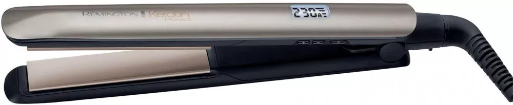 Tulajdonságok:A Remington S8540 Keratin Protect hajsimító keratin és mandula olajos kondicionálóval ellátott készülék, mely védelmet nyújt a haj károsodásával, töredezésével szemben. A hőmérséklet digitális állítható 150°C - 230°C között.